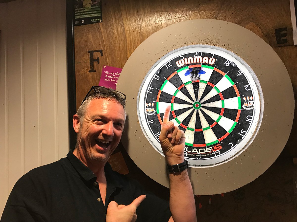 Jawel, eindelijk klonk deze kreet weer eens op vrijdagavond. Nadat hij vorige week al bij het ingooien (wat dus niet meetelt) drie maal triple 20 wist te gooien, deed hij het nu in zijn wedstrijd tegen Daddy Cool. Franky all the Way is dit seizoen de eerste speler met een 180 achter zijn naam.
